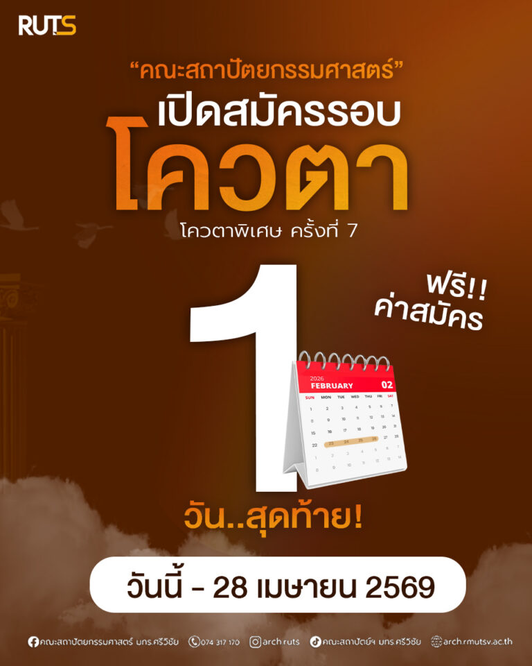 @arch_ruts ขอเชิญศิษย์เก่า กลับบ้านของเราในวันที่ 12 เมษายน 2567 ในงานคืนสู่เหย้า คณะสถาปัตยกรรมศาสตร์ “ถาปัตย์ ริมเล หลบเริน” ครั้งที่ 1 🧡🖤 #สถาปัตย์ริมเล #มทรสงขลา #ARCHRUTS #เด็กมทรสงขลา #คณะสถาปัตยกรรมศาสตร์ #คืนสู่เหย้า