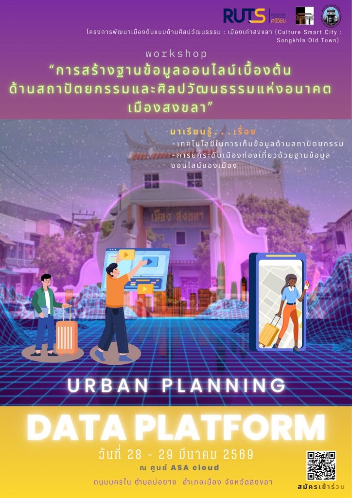 ภายใต้โครงการพัฒนาเมืองต้นแบบด้านศิลปวัฒนธรรม : เมืองเก่าสงขลา (Culture Smart City : Songkhla Old Town) มหาวิทยาลัยเทคโนโลยีราชมงคลศรีวิชัย ขอเชิญชวนผู้ที่สนใจร่วมเรียนรู้และพัฒนาเมืองผ่านนวัตกรรมข้อมูล ในหัวข้อ: