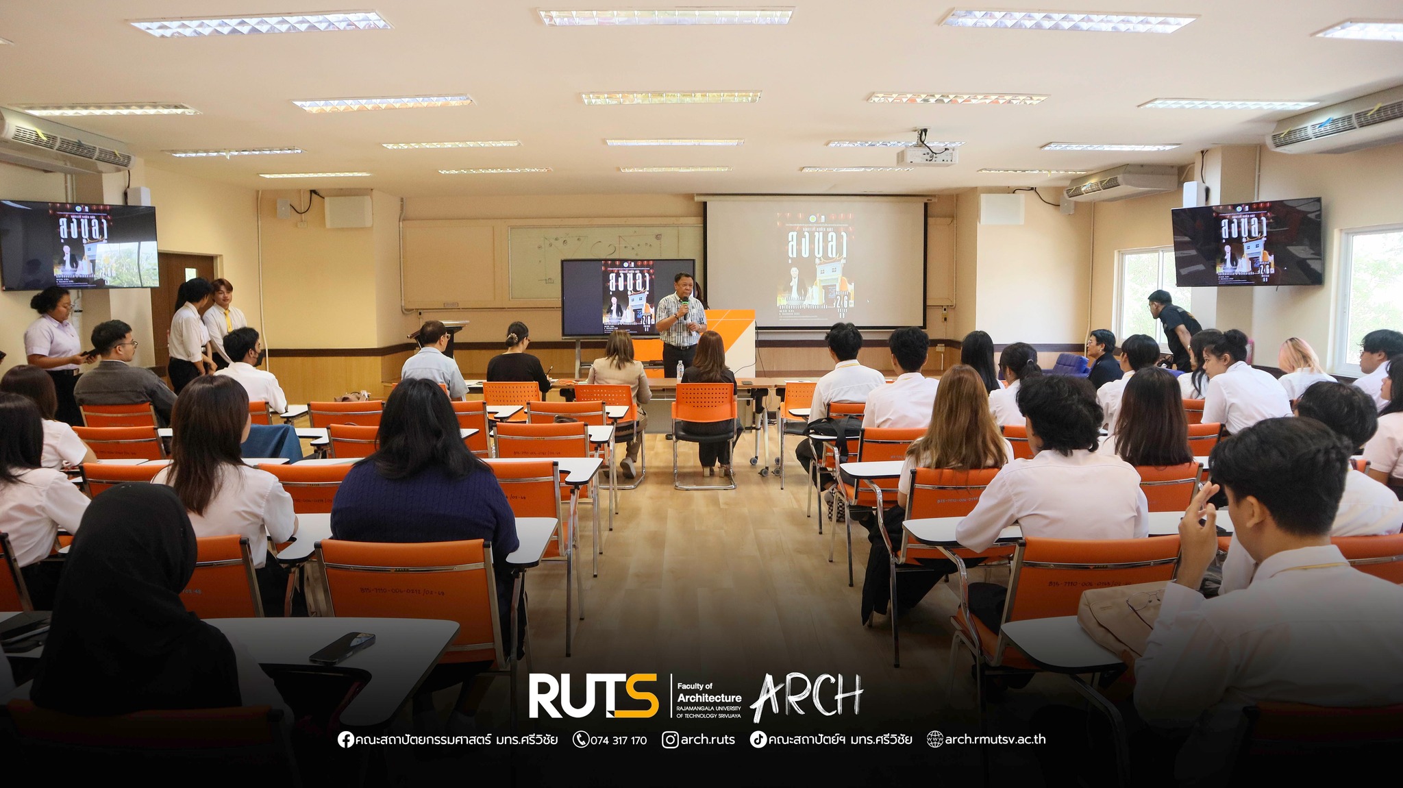 ในโอกาสนี้ได้รับเกียรติจาก นายวันชัย ปริญญาศิริ นายกเทศมนตรีนครสงขลา เข้าร่วมรับฟังการนำเสนอและร่วมคัดเลือกหัวข้อสัมมนาที่สอดคล้องกับนโยบายการพัฒนาเมืองเก่าสงขลา ณ ห้องเรียนรวม 31203 อาคาร 31 คณะสถาปัตยกรรมศาสตร์ โดยบรรยากาศเป็นไปอย่างคึกคักและเต็มไปด้วยไอเดียสร้างสรรค์ที่พยายามดึงศักยภาพของอาคารเก่ามาตีความใหม่ในบริบทของธุรกิจสถานบันเทิงเชิงวัฒนธรรม